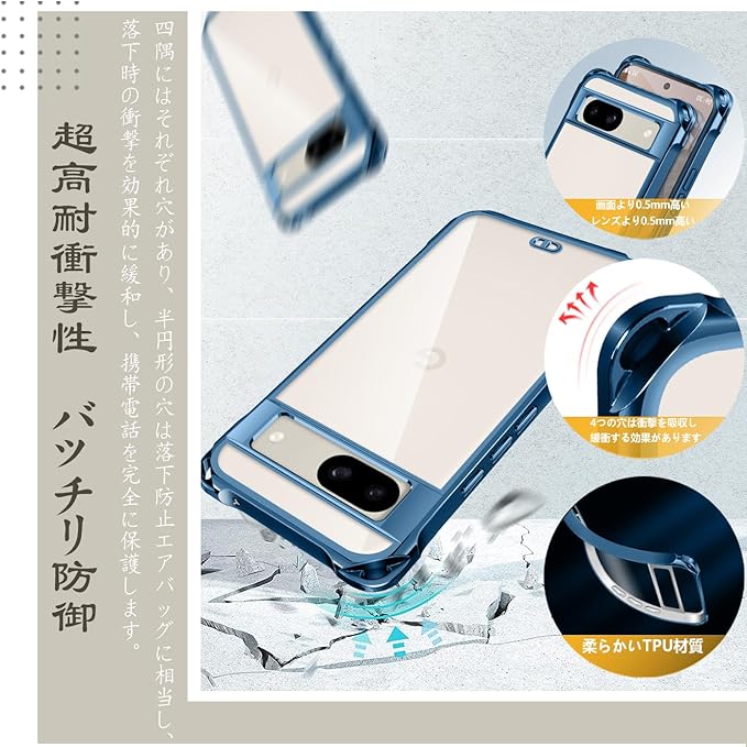 Google Pixel 8a ケース クリア ショルダー 耐衝撃 ピクセル8a カバー 透明 スマホケース 織りストラップ付き 肩がけ 首掛け 紐付き カバー 縄掛け シングルショルダーロープ 斜めがけ 調節可能なショルダー クロスボディ 多目的キャリー ファッションデザイン TPUスマホ 柔軟 軽 薄 (ブルー) | etshop