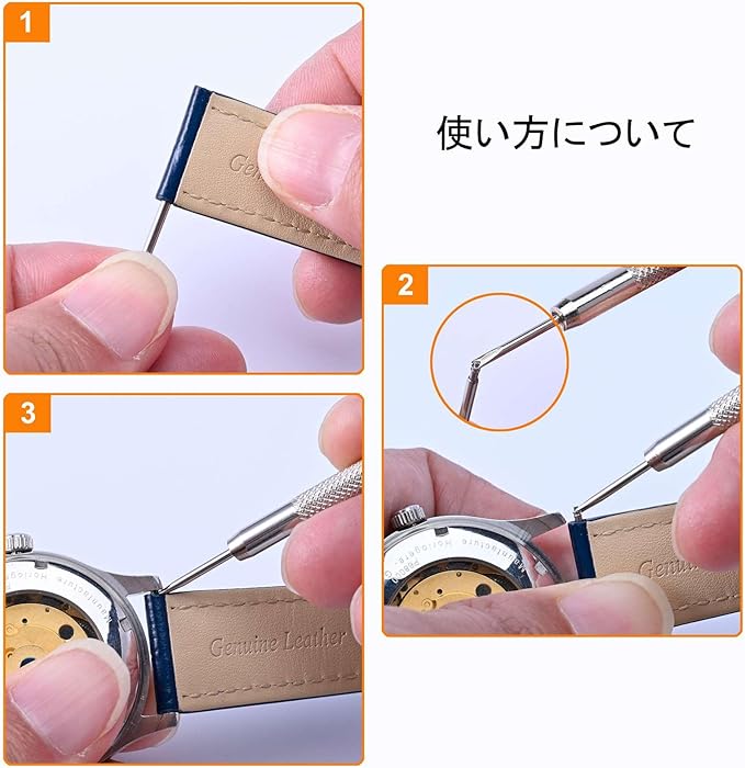 スプリングバー4本及びバネ棒外しがセットになっております。自分自身で腕時計ベルトの交換ができます。