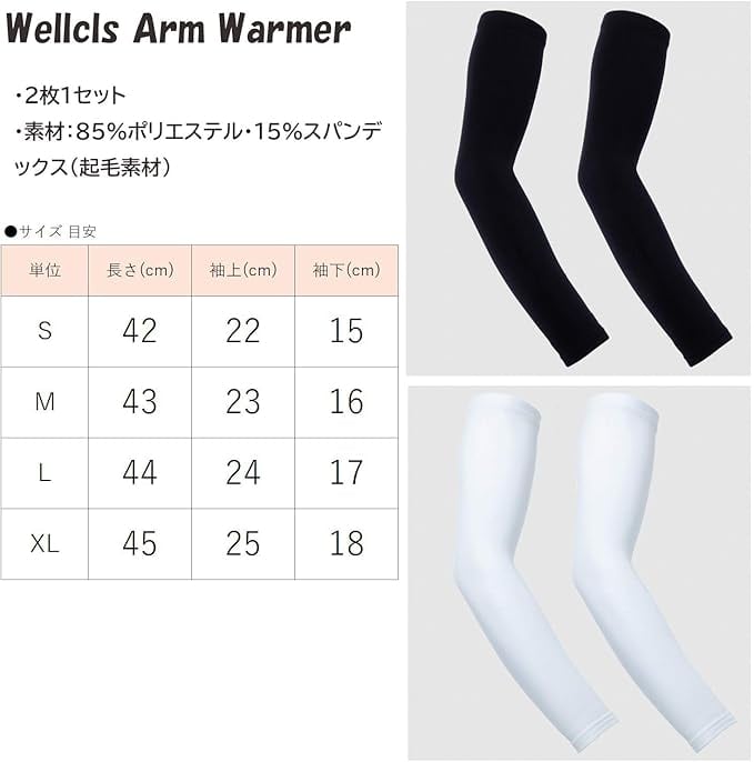 ウェルクルズのアームウォーマー。2枚1セット。【素材】85%ポリエステル・15%スパンデックス(裏起毛素材)
