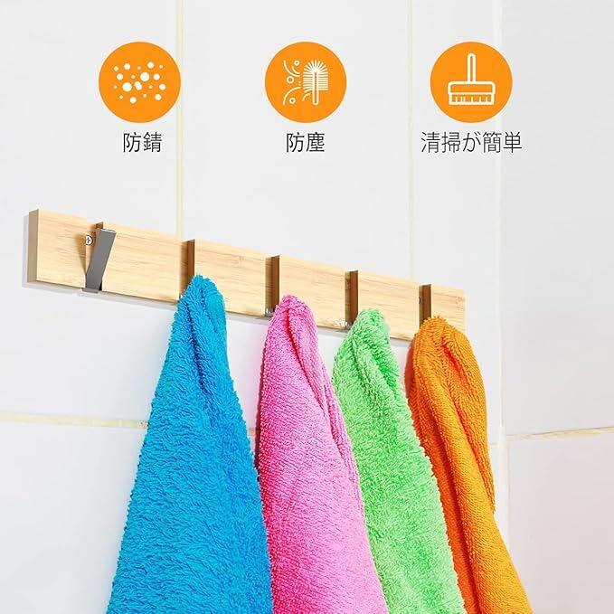 ●多用途:合成木材製の壁掛けフックは玄関、台所、浴室、寝間などの空間に、限られたスペースをより有効に利用できます。例えば、玄関に設置して、外出時に必要なものを掛けておくと便利です。