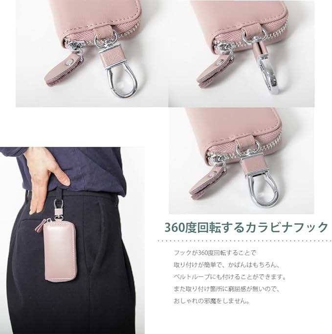 スマートキーケース レディース キッズ 可愛い 革 シンプル おしゃれ カード入れ コンパクト 自転車の鍵 取り外し 簡単 車の鍵も入る ベルトループ KAN001219