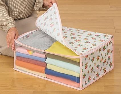 【商品仕様】:サイズ/約幅48 奥行35 高さ20cm、カラー/ホワイト、柄/プチローズ柄、内容/4個組、収納目安(1個あたり)/厚手セーターなら約5~7枚・薄手シャツなら約20~25枚、材質/ポリプロピレン・ポリエチレン
