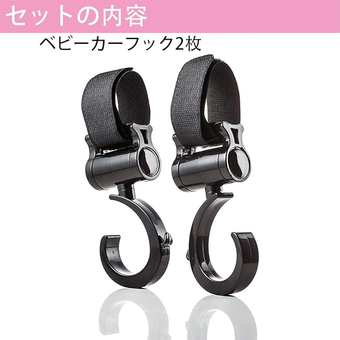 【ベビーカーフック】材質:フック部分 /ABS 樹脂、ベルト部分 / ナイロン。本体サイズ:(約)縦105mm*横 55mm*厚さ 25mm,重量34g(フック1個)。パッケージ内容:フック2個。静荷重:(約)3kgフック1個使用時)。360度回転だけでなく、首振り180度でとても便利です。ベビーカー, 車のシート, 自転車のハンドル, スーツケース, 梁などで使用可能。※【2層ガーゼ】サイズ:30cm*30cm 素材:2重ガーゼ コットン100% 6枚セット。厳しい審査基準をクリアした良質の綿を100%使用を採用しており、綿本来の吸水性・柔らかさが持続し、洗濯を繰り返しても硬くなりにくく、ずっと触りたくなる使い心地です!ガーゼを2枚重ねているので、空気の層ができ、ふんわりとした肌触りを持っています。吸水性があるので、水分をよく吸い取ってくれ、ベビーもキッズも心地よく使えます。赤ちゃんのお口周りの拭き取りや汗拭きなとき、お肌のお手入れに欠かせないガーゼハンカチを安心素材で作りました。外出時に使うハンカチとして使用したり、食卓ではおしぼりとして使うこともできる、プレゼントにオススメ。