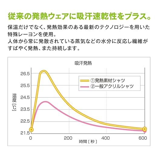 ●保温だけでなく、発熱効果のある最新のテクノロジーを用いた特殊レーヨンを使用。人体から常に発散されている蒸気などの水分に反応し繊維がすばやく発熱、また持続します。●前開きタイプ