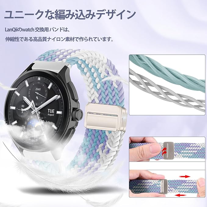 [LanQii] バンド 22mm 対応 20mm 対応 バンド 交換ベルト ナイロン バンド 編み込み 磁気吸着取り付け スポーツ用 弾力性 長さ無段階調整 柔軟 防汗 通気 夏向け 男女兼用 簡単取り付け コンパチブル 22mm 対応 バンド - ブルー&パープル(22mm) | etshop
