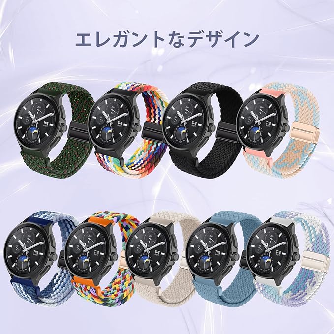 ⌚【ユニークな編み込みデザイン】伸縮性のある高品質なナイロン糸素材で、高精度な編み込む技術でバンドを織って、特殊な加工で糸が抜けにくいし、何度の着脱も変形にくいです。軽量で柔らかいし、滑らかなバンド編み面は肌に快適な感触を与えて、肌にもやさしいし、通気性も抜群で、快適な着け心地を感じられます。変形にくい素材なので、汚してしまった場合でも丸洗いこともできて、便利です。高品質の素材、優れた伸縮性と通気性により、一日中着用していても脱ぎたくなることはありません。