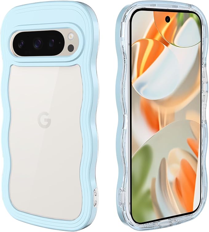 【Newnugds】Google Pixel10/10 Pro/9/9 Pro ケース グーグル ピクセル10 ケース 韓国 おしゃれ シンプル 波状エッジ 透明 2in1 Pixel 10 カバー 創意 個性 超軽量 可愛い 女子向け 指紋防止 擦り傷防止 全面保護 耐衝撃 人気Pixel10/10 Pro/9/9 Pro カバー ライトブルー | etshop