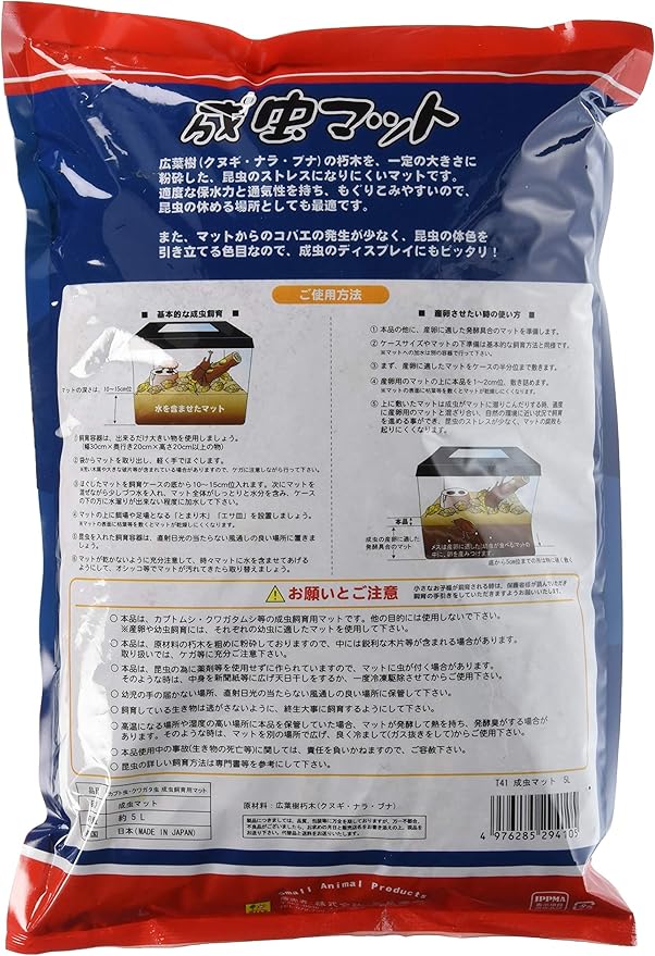 クヌギ・ナラ・ブナなどの朽木を粉砕し、適度な保水力を持ったマットで成虫飼育に最適。カブトムシ・クワガタムシの休息場所として最適です。