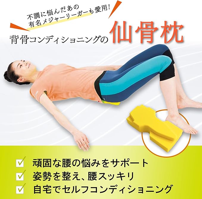 【不調に悩んだあの有名メジャーリーガーも愛用】仙骨枕は、仙骨を含む背骨周辺にアプローチすることで、身体をスッキリさせる道具です。