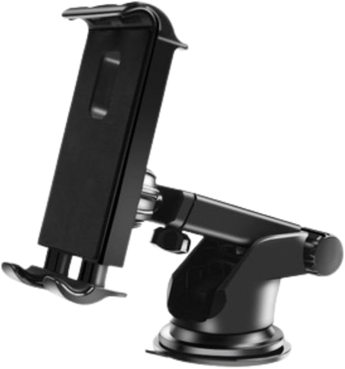 [RioSole]タブレットホルダー 車載ホルダー 車 運転席 タブレットスタンド モニタースタンド 粘着ゲル 強力吸盤 車載 ダッシュボード用 伸縮アーム 360度回転 充電可能ホール付 簡単取付 転落防止 防振 伸縮 (ブラック)