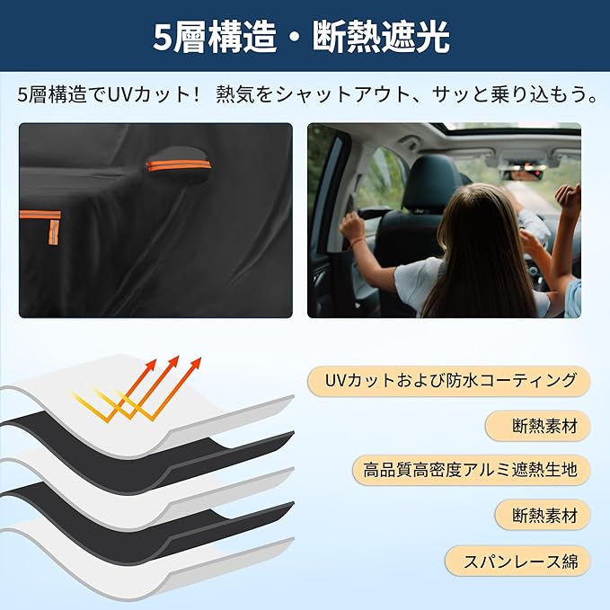 【優れたデザイン】7個の反射警告テープ:夜間に光を放つ蛍光オレンジ色で設計されており、周囲の視認性を高め、予期せぬ衝突を効果的に回避します。運転席側ジッパー:便利な運転席側のジッパーにより、いつでも車内の小物を取り出したり、運転席への出入りがスムーズです。 風を防ぐストラップ伸縮性のある裾デザインで、どんな天候でもしっかりします。