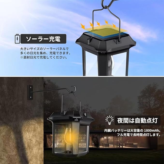 ランタン ソーラーライト LED ガーデン 屋外 防水 暖色 IP65防水 1800mAh 大容量電池 高輝度 夜間自動点灯 壁掛け 庭先 表玄関 廊下駐車場 ガーデン 停電時適用 防災 地震 津波 台風 防災対応 20時間点灯可能 Uni Buty (単品) | etshop