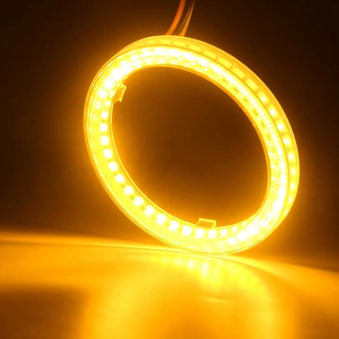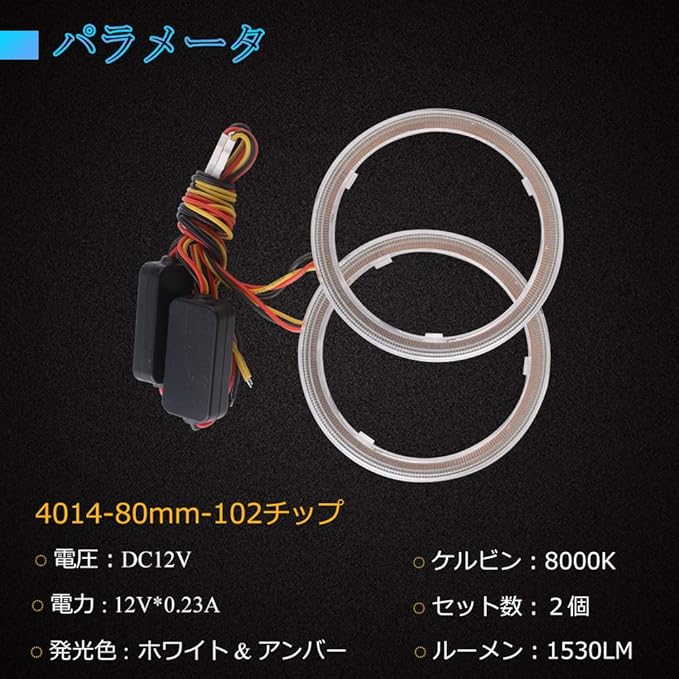 YongMing イカリング led ヘッドライト 80MM 4014 102連 両面テープ カバー付き ホワイト+アンバー 2色切替 DC12V 2個