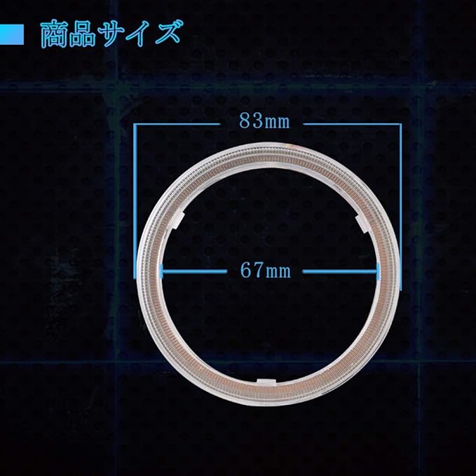 タイプ:イカリング 4014 80mm 102連 発光色:ホワイト+アンバー カバー外径:約83mm カバー内径:約67mm ルーメン: 約1530LM