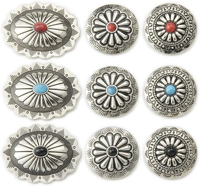 コンチョボタン(デージー、ウエスタンフラワー、楕円)の9個セットです。ビンテージ調の足つきターコイズボタンです。
