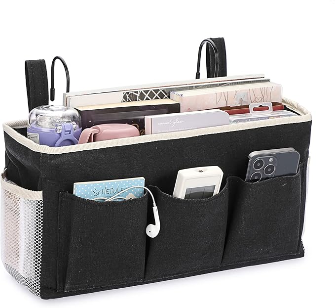 Sumnacon ベッドサイド収納ポケット 大容量 多機能収納かご 吊り下げ収納袋 掛け袋 小物収納ボックス 収納かご 雑貨収納 雑誌ブック マルチポケットオーガナイザー 防水素材収納袋 ベルクロ 学生寮 家庭 車用 マルチポケット マジックテープフック 鉄製フック(ブラック)