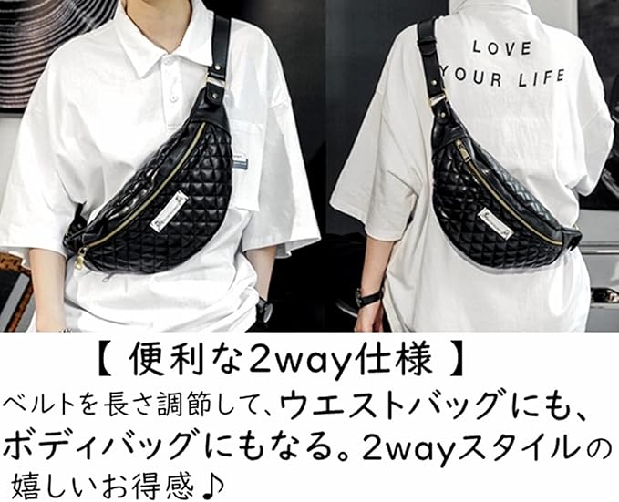[便利な2way仕様] ベルトの長さ調節で、ボディバッグにもウエストバッグにもなります。[ファスナー付きインナーポケットを装備] ポケットが充実しており、整理して収納できます。荷物の仕分けに便利。