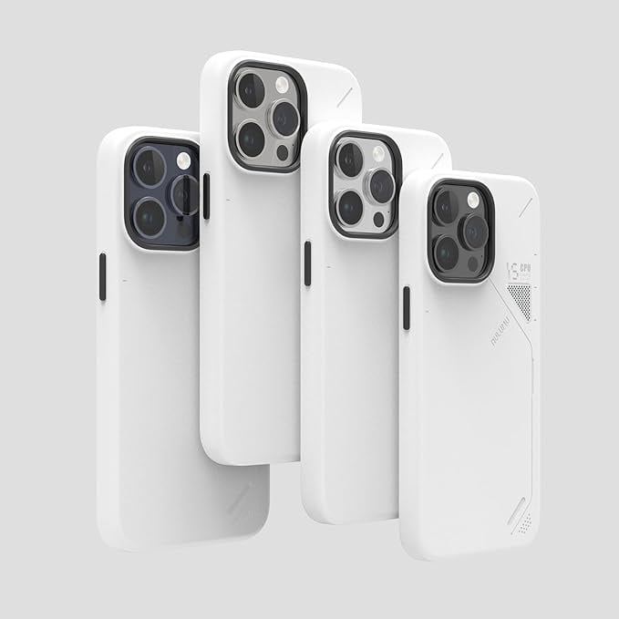 Aulumu A15 iPhone 15 Pro用 ヴィーガンレザー マグネットケース クールデザイン窓付き MagSafe対応 金属ボタン ホワイト