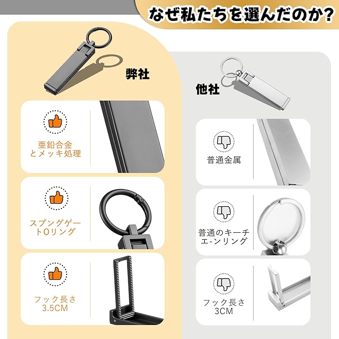 【改良版テーブルフック】このバッグフックは、従来のキーチェーンから丸いオープンリングに変更され、持ち運びがさらに便利になりました。また、フック部分の長さも延長されているため、バッグを掛けた際の安定感が増し、落ちる心配もありません。