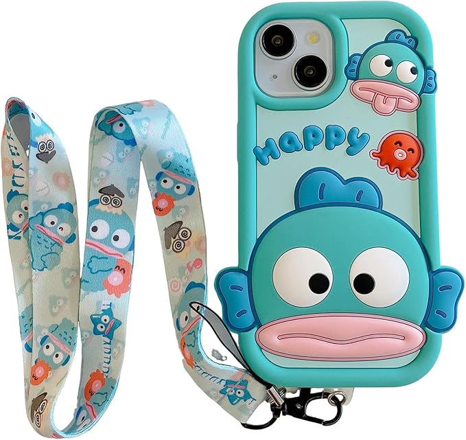 RUIKER iphone 13promax 用 ケース 可愛い ストラップ ハンギョドン 3D立体 耐衝撃 韓国 iphone12promax アニメ キャラクター スマホケース 対応 iPhone 12promax ケース シリコ ン ソフト アイフォン13promax スマホケース | etshop