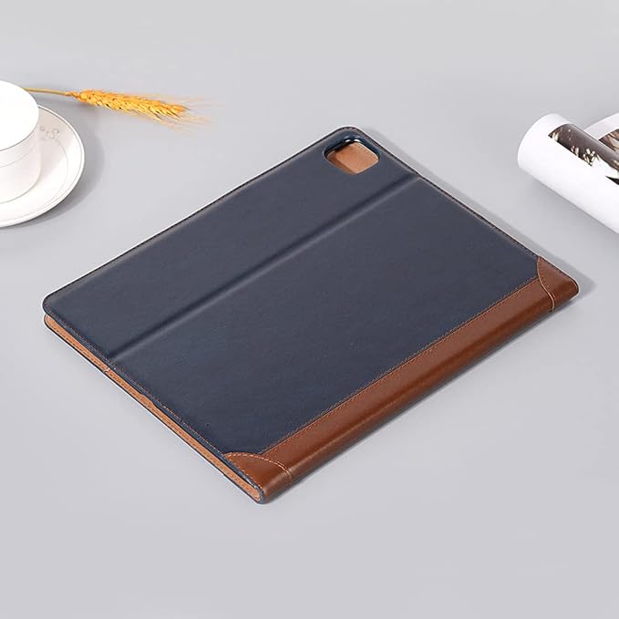 iPad Pro7世代 (13'') M4 2024ケース人造皮革製 スリープ機能付きカバー 筆ホルダー付き-青