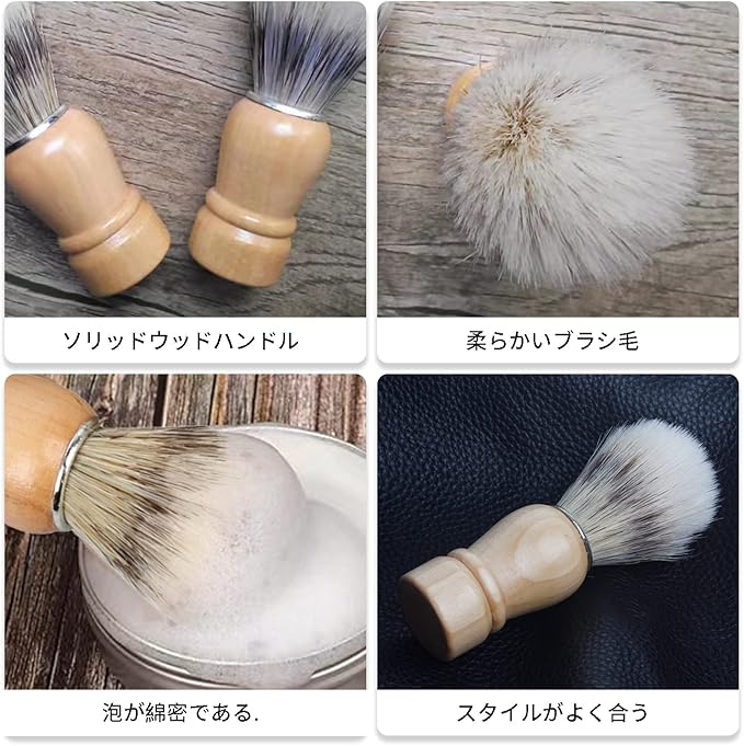 Doyime シェービングブラシ ひげブラシ (2個セット) 髭剃りブラシ 理容ブラシ 柔らかい 握りやすい お手入れが簡単 木製ハンドル ひげ剃り 髭剃り 泡立ち 理容 洗顔 ブラシ メンズ 携帯用 原木色 | etshop