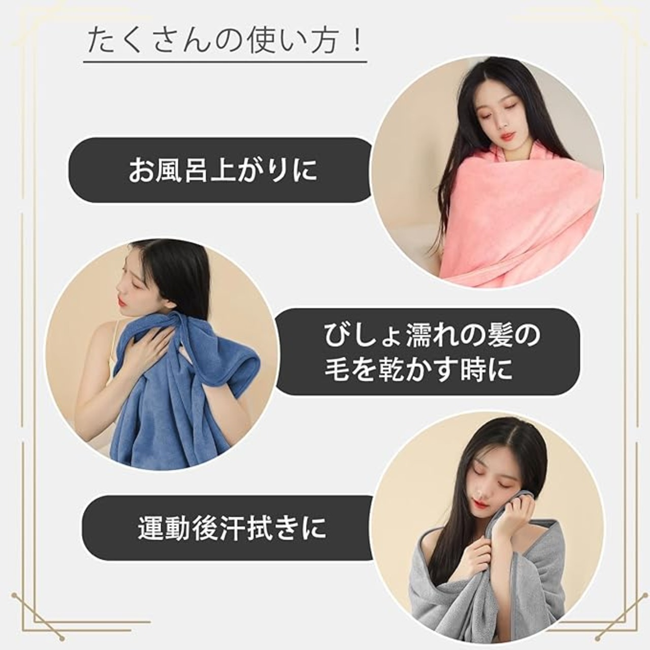 【バスタオル 5枚セット】材質:マイクロファイバー ・サイズ:約60 120cm ・カラー:ホワイト、ブルー、グレー、ダークグレー、ピンク 内容:5枚セット・用途:バスタオル、プールタオル、ひざ掛けなど