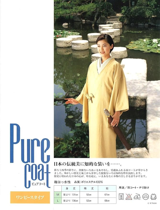 ワンピースタイプの雨コート。超はっ水加工が施され、大切なお着物を