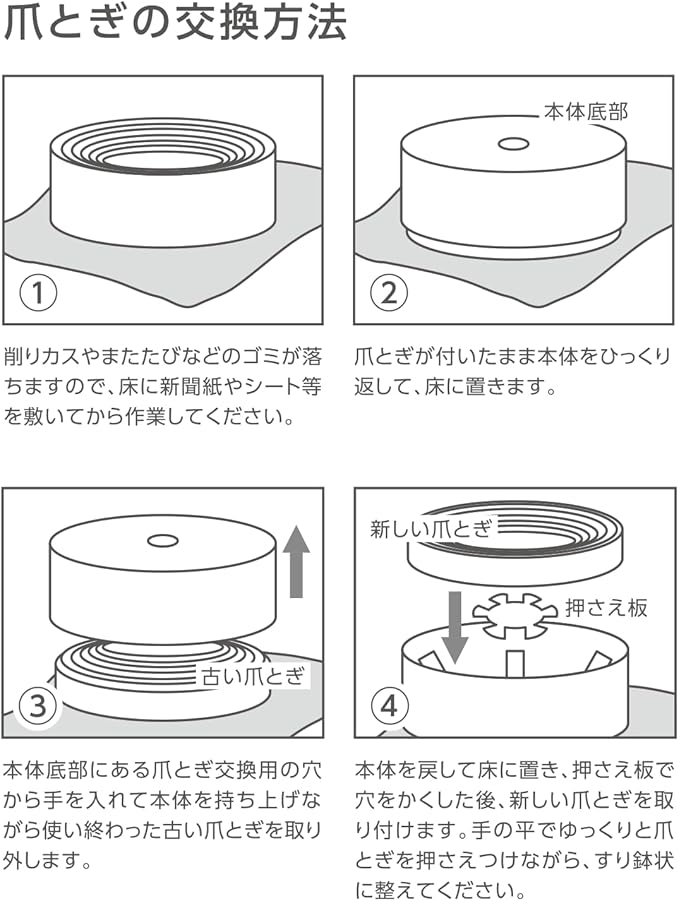 【爪とぎ部分は交換可能】すり鉢状の爪とぎ部分は交換可能!こちらのページ内で2個セットにて販売しております。(※当商品は深さ13cmとなっており、他社製の交換品をご使用になりますと上手くすり鉢状に設置できない可能性が御座います。交換品をお求めの方は純正品のご使用をお願い致します。)