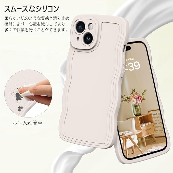 ♥【ウェーブ湾曲縁&TPU肌触り】湾曲したエッジにより握りやすくなっています。アイフォン iPhone 15用 ケースは滑らかな液体シリコンゴムと柔らかいTPU製で、耐傷性、耐指紋性、耐衝撃性に優れ、取り外しも簡単,お手入れし易い。