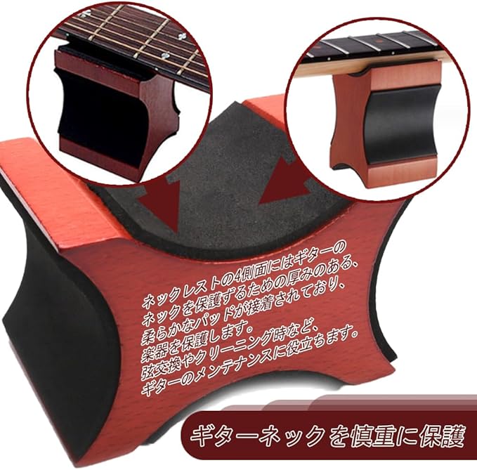 【ギターネックを慎重に保護】ネックレストの4側面にはギターのネックを保護ずるための厚みのある、柔らかなパッドが接着されており、楽器を保護します。弦交換やクリーニング時など、ギターのメンテナンスに役立ちます。