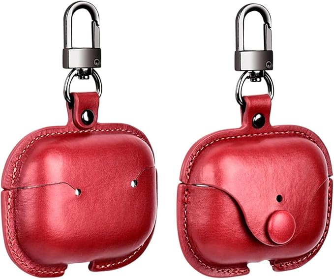 AIYYXX AirPods Pro ケース レザー 第1世代/ 第2世代 /第3世代 イタリアンレザー 対応 AirPods Pro 1/2(2023/2022/2019) 高級本革 ケース PUレザー 全面保護 フロントLEDライトが隠れない ワイヤレス充電に対応 衝撃吸 防水防塵 軽量小型 紛失防止 カラビナ付きカバー(Series AirPods Pro 1/2,レッド)