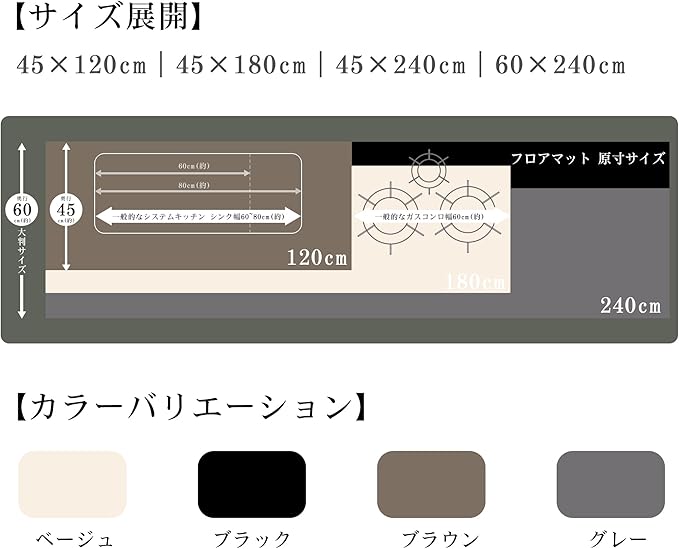 DIHACOZ キッチンマット 拭ける【L型を革新-隙間防汚対策】45x240cm 低反発 滑り止め 防音 防水 6mm 分厚 PVCマット 洗える い北欧 おしゃれ 高級 ブラウン | etshop