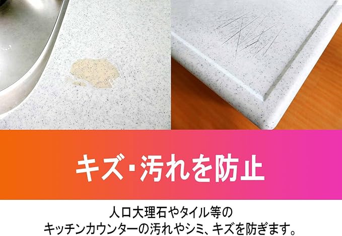 キズ防止・・・人工大理石やタイル等のキッチンカウンターの汚れやシミ、キズを防ぎます。