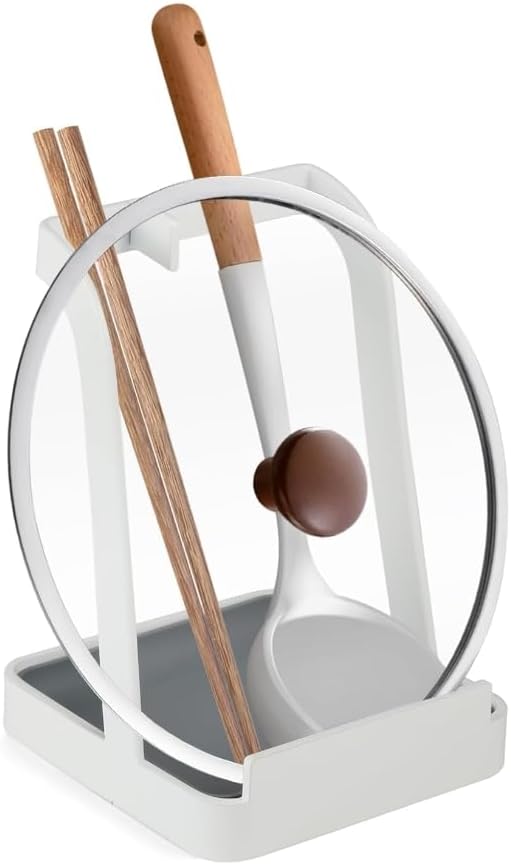Liebbon お玉 蓋置きスタンド|鍋蓋置き・菜箸・包丁・しゃもじ対応|水切りトレー付き 多機能 調理器具立て (ホワイト)