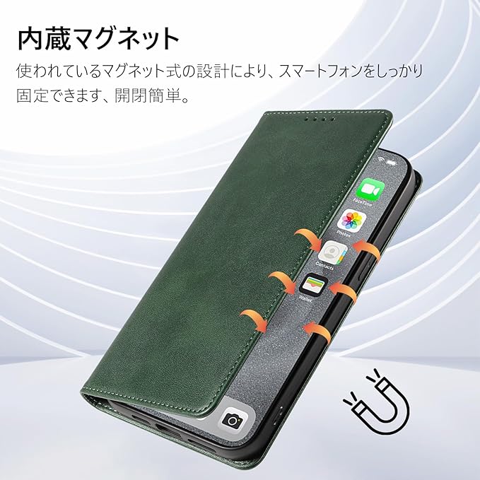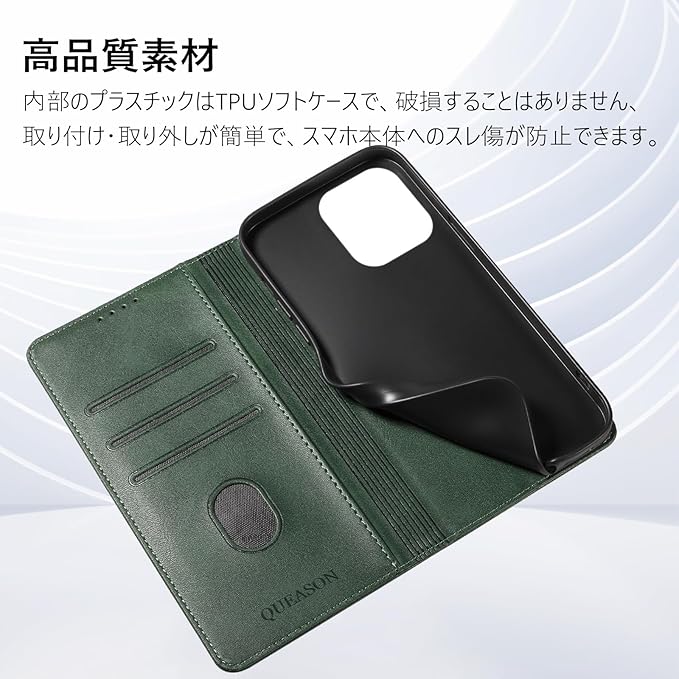 QUEASON【iphone 16 pro 用 ケース 手帳型】マグネット式 いphone16pro 用 ケース 手帳型 スタンド機能 iphone16pro ケース 手帳型 カード収納 アイフォン16pro ケース 手帳型 携帯カバー iphone 16pro ケース 手帳型 耐衝撃 落下防止 防塵(グリーン) | etshop
