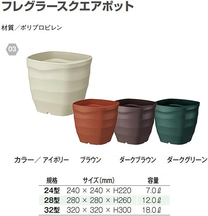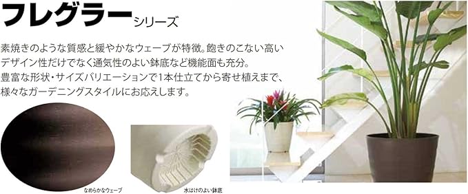 ナチュラルな波打つデザインが植物を、より美しく演出するフレグラーシリーズのスクエア型ポット