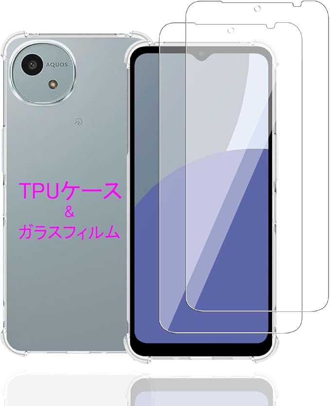 【対応機種】 AQUOS wish4 専用 ケース + 2枚ガラスフィルム。