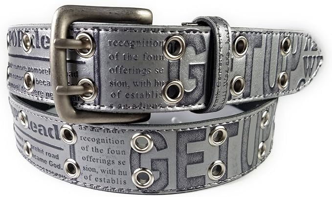 [シーランド] ロング ダブル ハトメ ベルト 英字柄 ウエスト50~130cmまで:幅40mm 【シルバー】 日本製