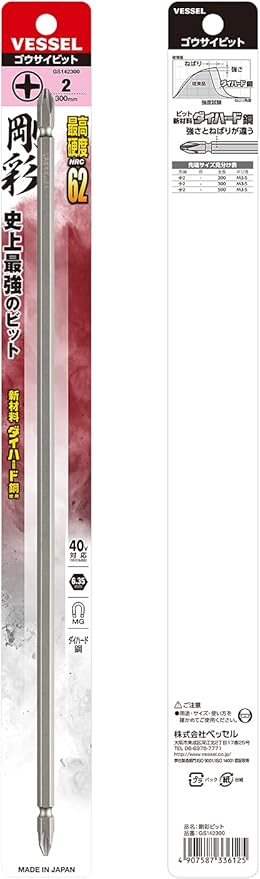 ●ビット材はダイハード鋼(最高硬度HRC62)を使用。強く、しなやかなで耐久性は抜群。