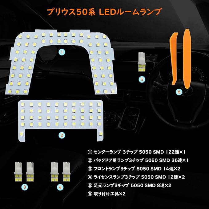 Zealsun プリウンス 50系 LED ルームランプ ホワイト 6000K 純正交換 取付簡単 加工不要 Prius 50系 室内灯 プリウス ルームランプ 車用 3Chip 5050 LED バルブ 7点 ZVW50 ZVW51 ZVW55 専用設計 カスタムパーツ | etshop