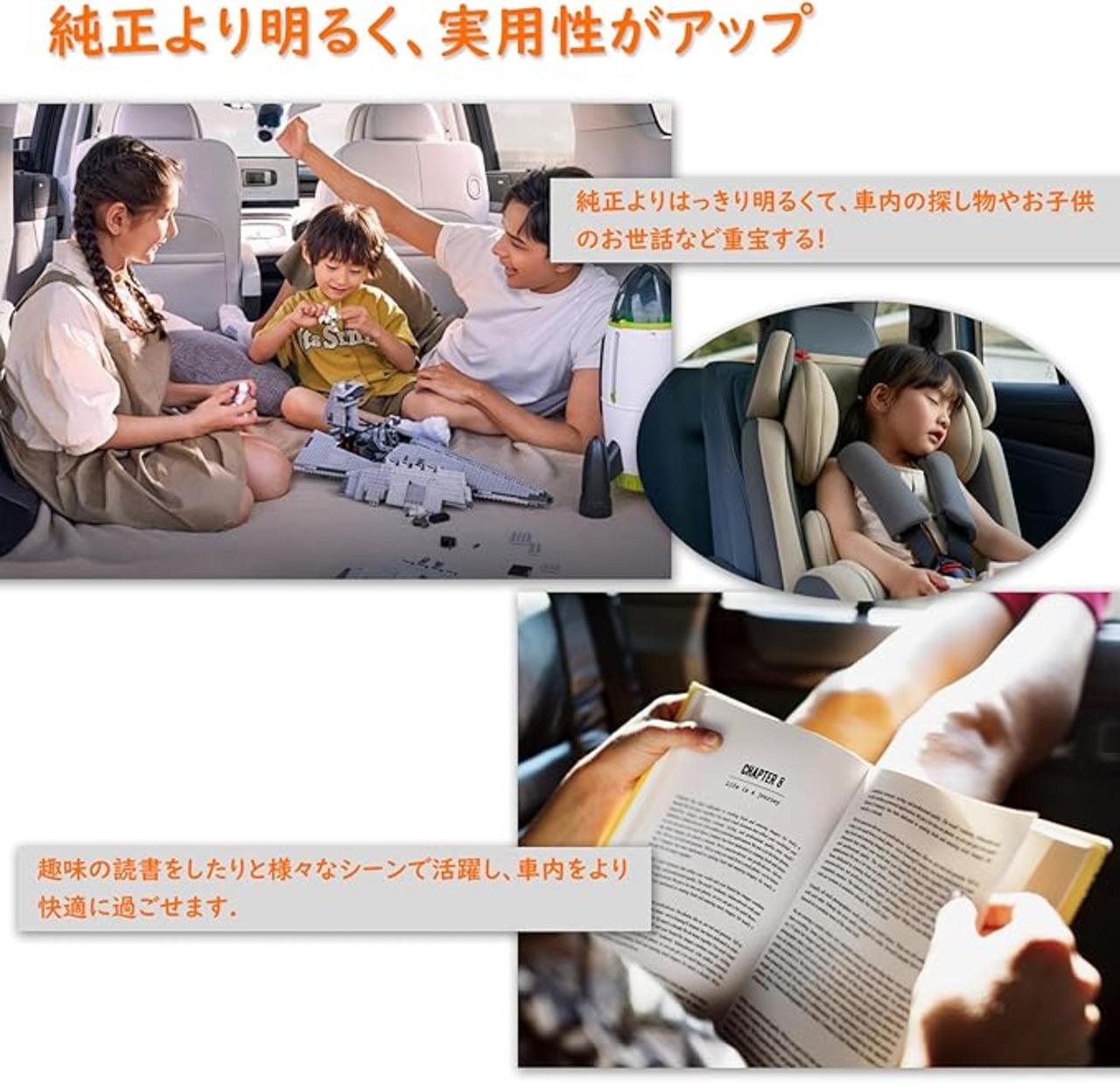 ✅「3チップ5050SMD採用、6000kホワイト」:高輝度・ 高拡散性・省電力に優れている高輝度5050 3チップSMD採用、 通常の1チップSMDの 3倍の驚く明るさが実現!純正よりはっきり明るくて、自然光に近く、車内の探し物やお子供のお世話など重宝して様々なシーンで活躍し、車内をより快適に過ごせます。