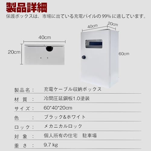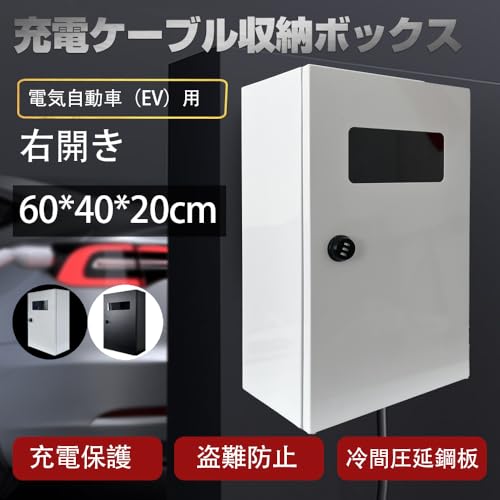 電気自動車用 充電ケーブル 収納ボックス 右開き 窓付き EV・PHEV・PHV用 充電ケーブルオーガナイザーケース 電気自動車 充電器ホルダー 冷間圧延鋼板1.0スプレー塗装 電気自動車充電ステーションボックス メカニカルロック 充電保護 盗難防止 防爆 防水防塵 屋内外兼用 (ホワイト, 60*40*20cm) | etshop