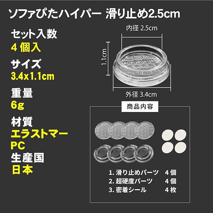 ソファ 滑り止め 超強力 ソファー 滑り止め ソファぴた ハイパー 細脚 2.5センチ クリア 4個 日本製 ソファ滑り止め ソファー滑り止め ベッド滑り止め テーブル滑り止め ソファ 足 傷防止 ズレ防止 防音 床暖房 ソファ 滑り止め 最強 2.5cm シェリー Shelly | etshop