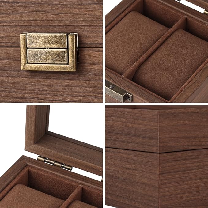 落ち着いた色味の木製収納ケースは大切な腕時計コレクションに相応しい安心感を与えます。シンプルですが、機能的なデザインは深さと直線にこだわり、上品と高級感を与えます。