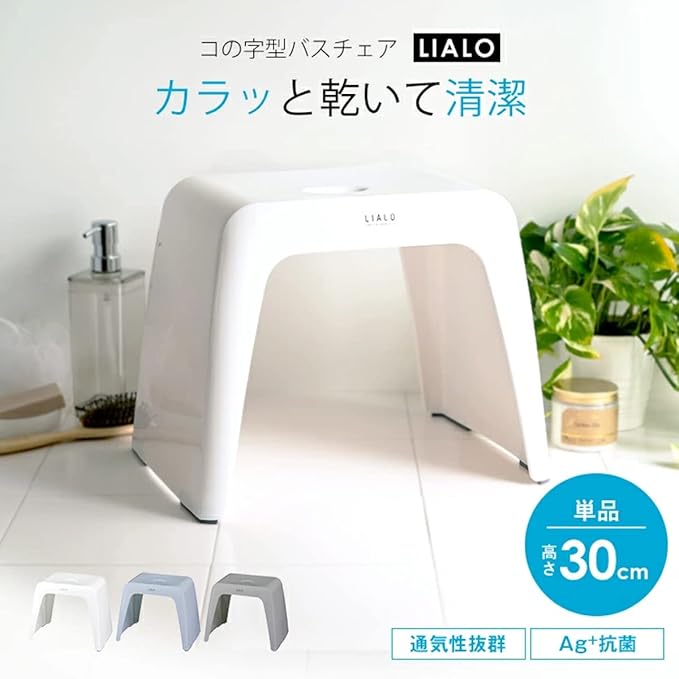 シンプルフォルムのスタイリッシュデザイン。通気性が良く、お手入れもラクラク。使用後は浴槽に掛けて収納できます。