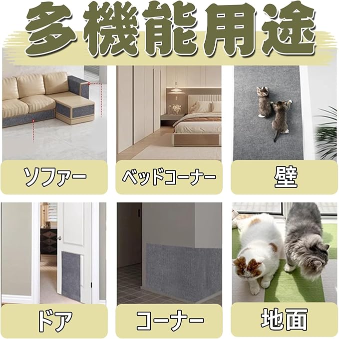 【DIYでの組み立てと切断】猫用の爪とぎマットは、DIYで自由に裁断し、必要に応じて組み立てることができます。猫棚、木製キャットツリー、キャットタワー、ソファなどにご使用ください。あらゆるスペースに合わせていくつかのサイズをご用意しています。