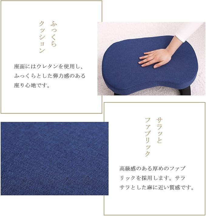 【使用感良い】座面のクッションで、長時間座ってもお尻が痛くなりにくいです。張地は布製で、長時間座っても蒸れにくく快適に使用できます。