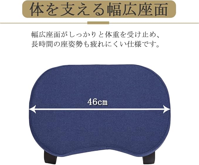 【座面の高さが丁度良い】あぐら座りに丁度良い座面高17cm。座面下に足を入れて座れば、膝や腰に負担もかからず、足のしびれを防ぐ事ができます。足を座面下に入れ込まずに、そのまま座ることもできます。