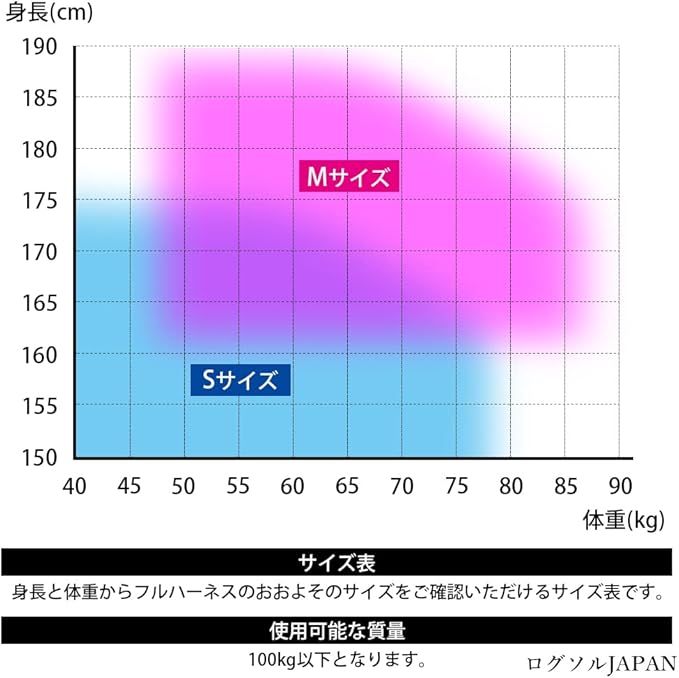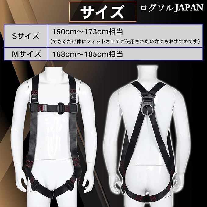 使用可能質量:100kg以下 参考適合身長:150~173cm 重量:約900g セット内容:フルハーネスx1/収納袋x1商品状態:新品